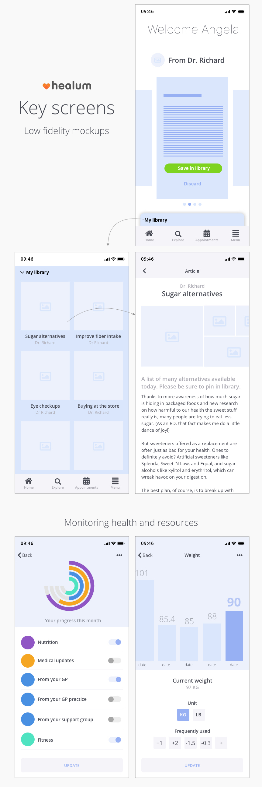 Working with patients and doctors alike, one thing I learnt fairly quickly was Using their language. Using techincal terms or terms that we would often use in UX design served little or no purpose. It was really important to see the picture from their point of view, specially for newly diagnosed patients.